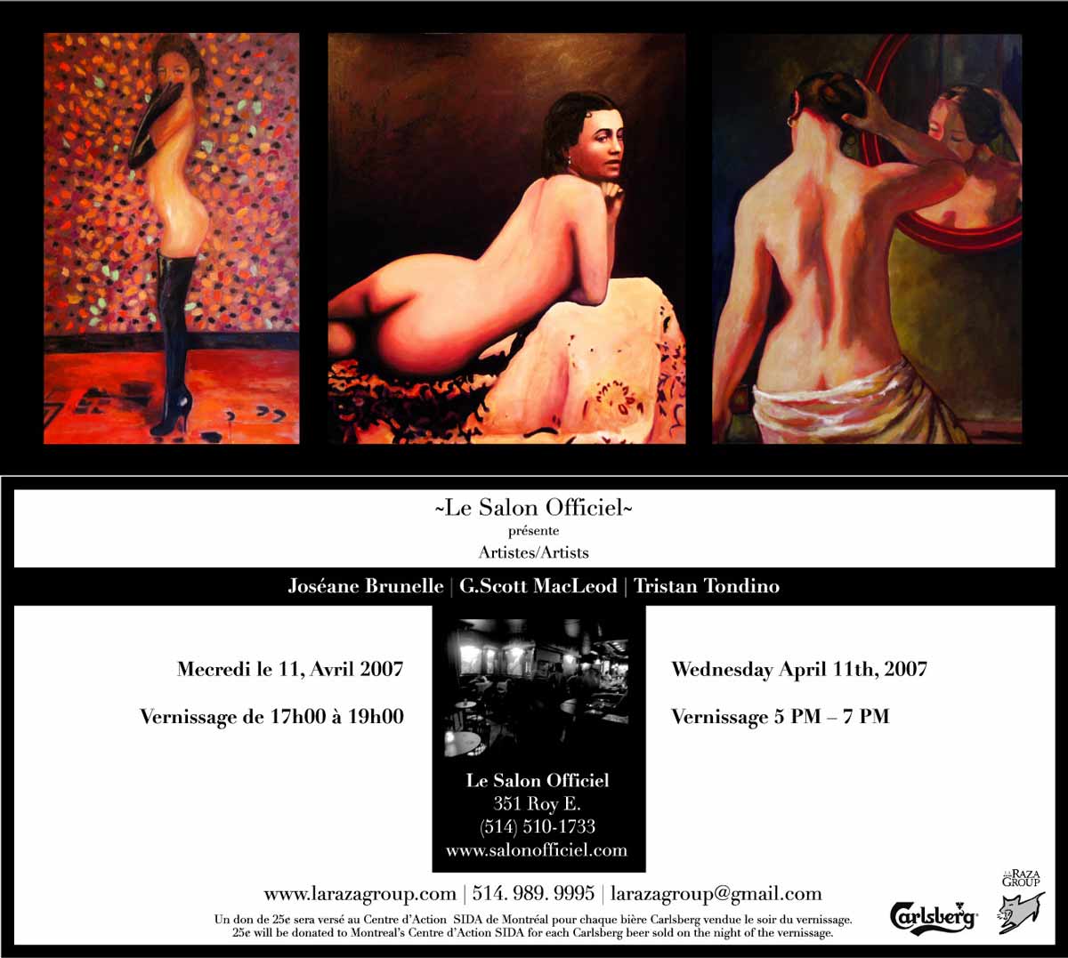 25¢ will be donated to Montreal’s Centre d’Action SIDA for each Carlsberg beer sold on the night of the vernissage.